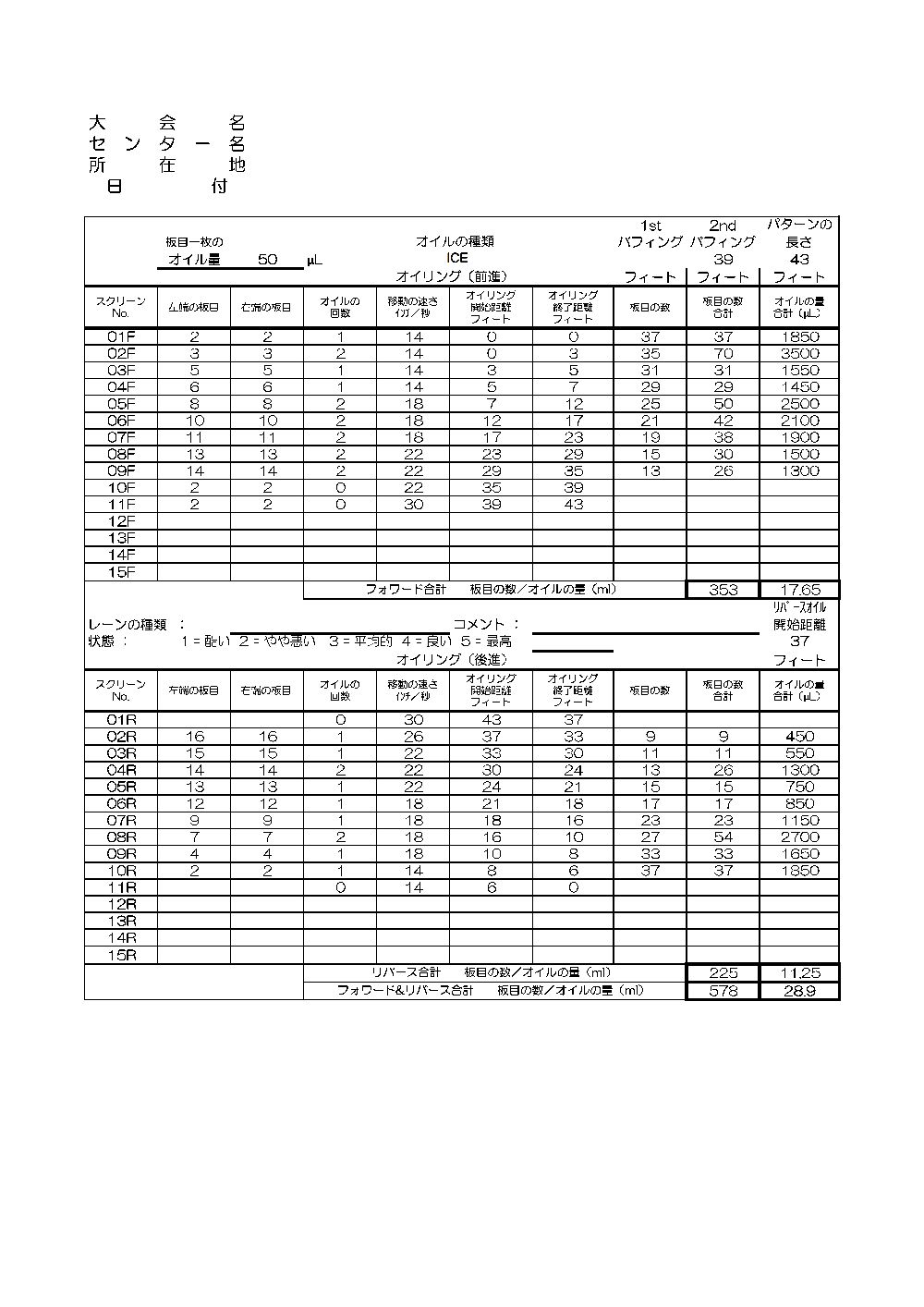 第57回 宮様チャリティーボウリング大会 群馬県予選会 要項、オイルパターン