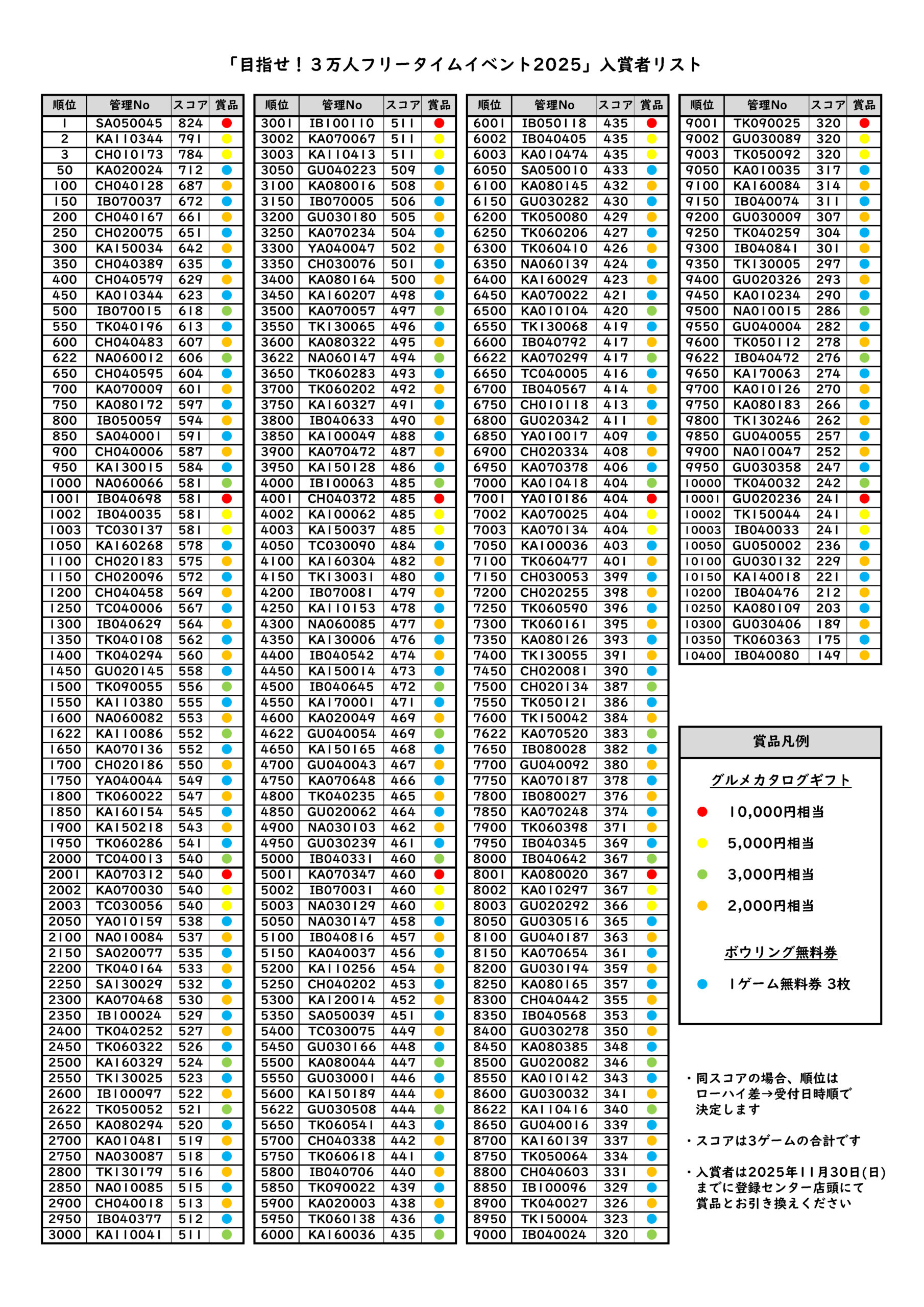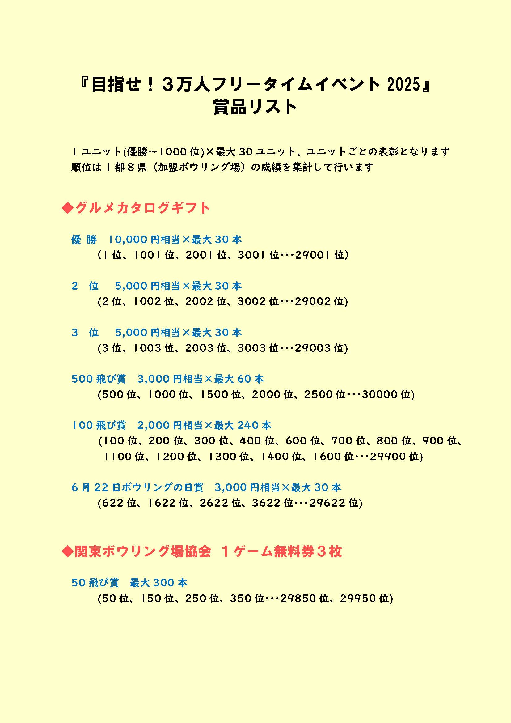 HOME > キャンペーン > キャンペーン 表彰順位発表「めざせ!3万人フリータイムイベント2025 関東ボウリング場協会」 2025年10月16日 詳細は特設サイトでご確認いただけます。 群馬県ボウリング場協会加盟ボウリング場別 桐生スターレーン <該当順位はありませんでした> エメラルドボウル パークレーン高崎 藤岡ボウル ドリームスタジアム太田 賞品リスト Twitter Share LINE -キャンペーン