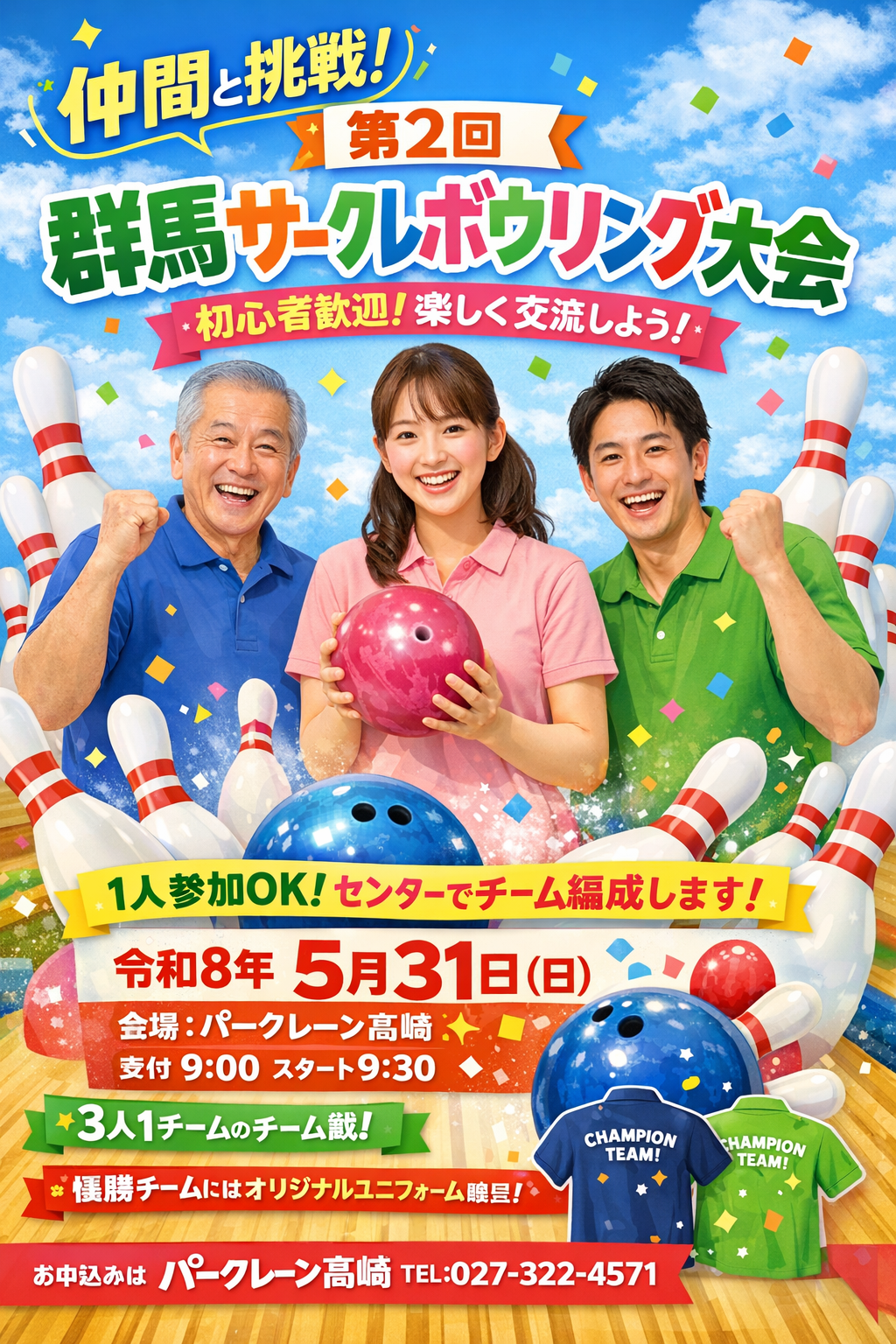 HOME > 大会概要 > 大会概要 第2回群馬県サークルボウリング大会in高崎 2026年4月5日 参加チーム募集中の大会 第2回群馬県サークルボウリング大会 Twitter Share LINE -大会概要